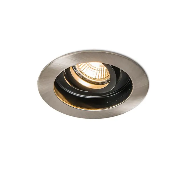 Moderne inbouwspot staal met zwart draai- en kantelbaar – Rondoo