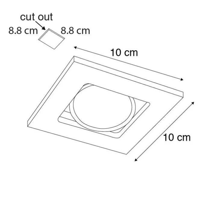Deze zwarte Qure past volledig in een moderne omgeving, hij staat leuk in de hal of in de keuken! Met een IP-waarde van IP20 is deze alleen om binnen op te hangen. Een leuk extraatje aan deze inbouwspot is dat hij kantelbaar is. Je kunt dus donkere hoekjes verlichten in huis waar jij het wil! De spot is vierkant maar heeft een ronde inbouwmaat, ideaal voor de montage. De inbouwmaten van deze Qure: een diameter van 9 cm en een diepte van 10 cm. De algemene grootte van deze spot is 10 cm in lengte en breedte. Met een GU10 lichtbron van maximum 50 watt maak je deze Qure helemaal af. Wanneer je het in de avond gezellig wil maken kun je deze lamp ook dimmen (dimmer niet inbegrepen). Verlicht je huis met deze Qure!