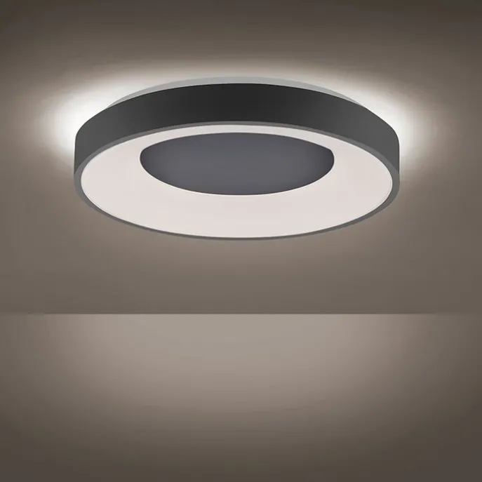 Steffie is een mooie moderne plafondlamp. Eenvoudig in haar design maar een erg stijlvolle toevoeging voor jouw interieur. De plafondlamp is gemaakt van kunststof en is afgewerkt in het donkergrijs. Hij heeft een diameter van 50 cm en een hoogte van 9 cm. Steffie wordt geleverd inclusief niet-vervangbare LED verlichting. Deze heeft een lichtvermogen van 3200 lumen en 2700 – 5000 Kelvin. Daarmee is het een echte krachtpatser! De plafondlamp is tevens dimbaar met de 3-staps dimmer. Dat betekent wanneer je één keer op je eigen lichtschakelaar duwt je 100% (volledig) licht krijgt, bij een tweede keer 60% licht. En bij een derde keer krijg je 30% (sfeer)licht. Zo bepaal je zelf altijd de gewenste sfeer in de ruimte! Gemiddeld gaat Steffie 30.000 branduren mee. Steffie is de perfecte lamp voor functionele verlichting. Voor in de werkkamer of op kantoor bijvoorbeeld. Geef jouw interieur een moderne touch met plafondlamp Steffie.
