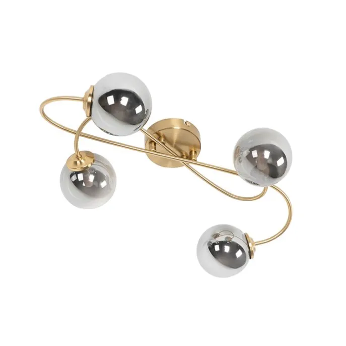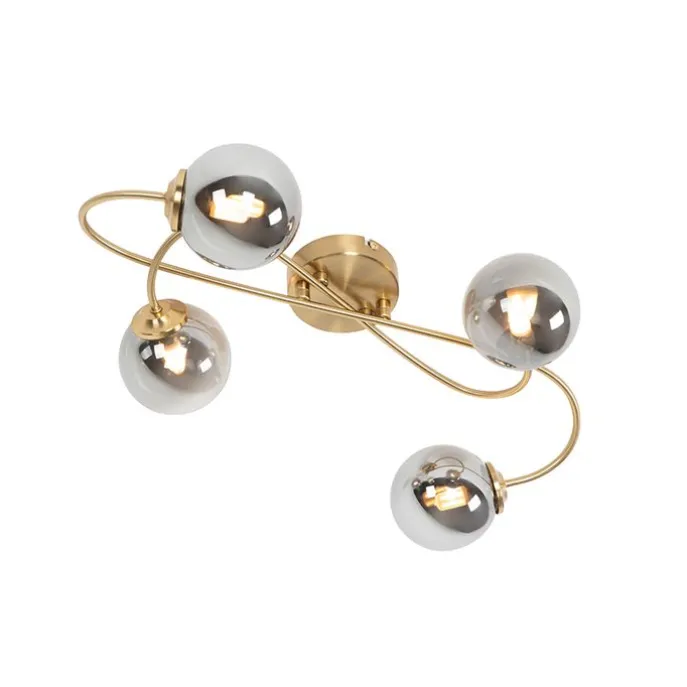 Moderne plafondlamp goud 4-lichts met smoke glas – Athens