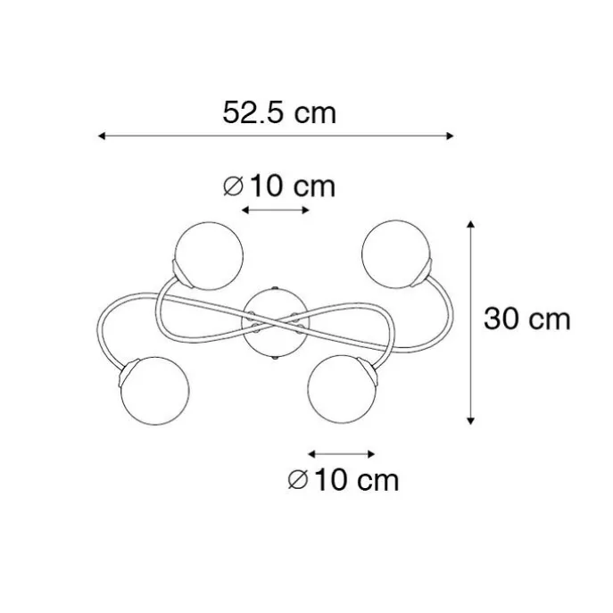 Door zijn opvallende design is plafondlamp Athens een echte blikvanger! Door het staal afgewerkt in goud te combineren met smoke glas krijgt de lamp een mysterieuze en moderne uitstraling. De plafondlamp heeft een hoogte van 18 cm, lengte van 52,5 cm en breedte van 30 cm. De montageplaat heeft een diameter van 10 cm en is 2,5 cm hoog. De glazen kappen hebben ieder een diameter van 10 cm. Athens maak je af met 4 lichtbronnen die ieder beschikken over een G9 fitting (max. 28 Watt). Vergeet deze er niet nog bij te bestellen. Voor extra sfeer kun je de plafondlamp aansluiten op een dimmer, deze is niet inbegrepen. Een echte toevoeging voor jouw interieur. Voor bijvoorbeeld de woonkamer, werkkamer of slaapkamer. Plafondlamp Athens is wat je zoekt!