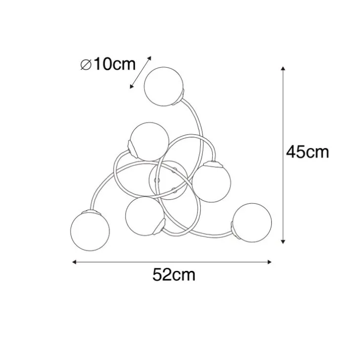 Ben je op zoek naar een moderne plafondlamp voor in huis? Dan is Athens wat je zoekt! Door de 6 verschillende lichtbollen is het een speelse lamp! Hij is gemaakt van staal met glas en afgewerkt in het goud. De glazen opale lampenkappen zorgen ervoor dat het licht niet direct in de ogen schijnt, maar dat het licht zich geleidelijk verspreidt door de ruimte. De plafondlamp heeft een diepte van 45 cm, hoogte van 16 cm en lengte van 52 cm. De montageplaat heeft een diameter van 10 cm en een hoogte van 2,5 cm. Je maakt Athens af met 6 lichtbronnen met G9 fitting van max. 28 watt. Zorg dat je deze er nog los bij besteld. Deze vrolijke plafondlamp past perfect in de woonkamer, eetkamer of slaapkamer!
