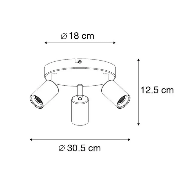 Wat een mooie plafondlamp is deze ronde Facil! De lamp is gemaakt van staal en is matzwart, wat het een moderne en tijdloze lamp maakt. De lamp heeft een diameter van 30,5 cm en een hoogte van 12,5 cm. De montageplaat heeft een diameter van 18 cm en een hoogte van 2,5 cm. Facil maak je compleet met 3 lichtbronnen met een E27 fitting (elk max. 40 Watt). Deze moet je er nog los bij bestellen. Het mooiste is natuurlijk als het ook een leuke lichtbron is, bijvoorbeeld een lichtbron met smoke glas, amber glas of met gekleurde kop spiegel. Zo voeg je net een extra detail toe aan de lamp. De lamp is dimbaar met een externe dimmer, deze is niet inbegrepen. De lichtpunten zijn afzonderlijk verstelbaar, zo bepaal je zelf waar je het licht naar toe laat schijnen. Bedenk eens hoe mooi deze plafondlamp in jouw woonkamer, slaapkamer of werkkamer zou staan. Twijfel niet langer en ga voor deze Facil!