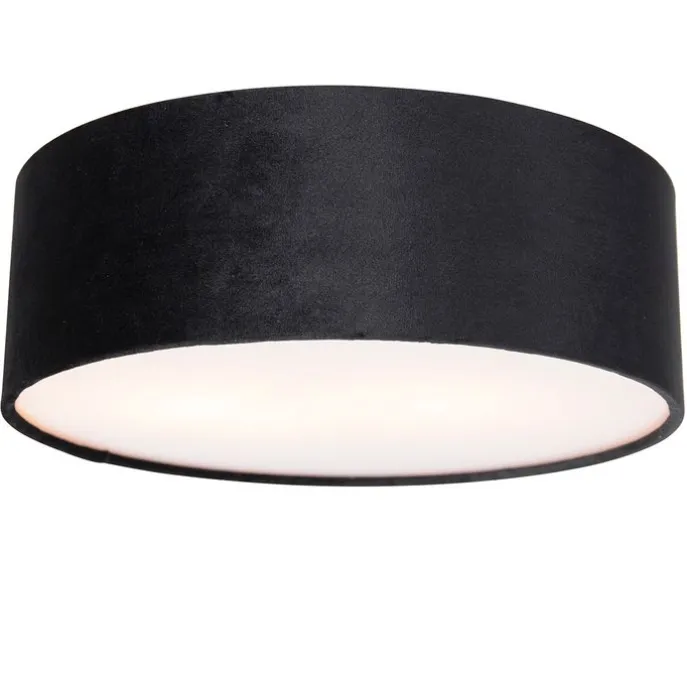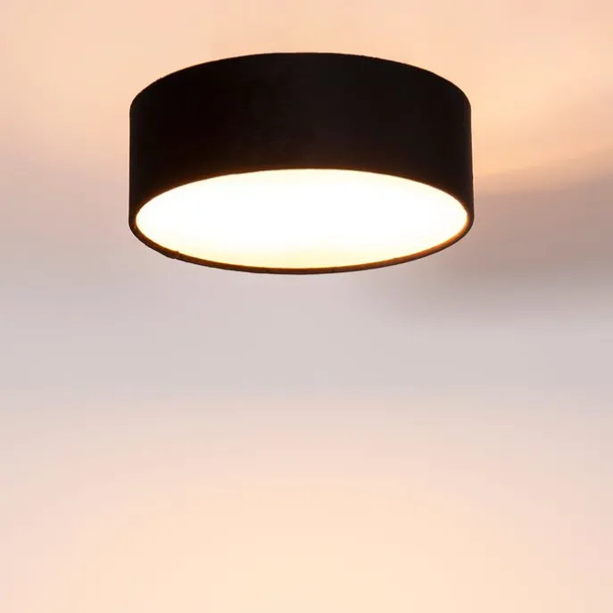 Moderne plafondlamp zwart 30 cm met gouden binnenkant – Drum