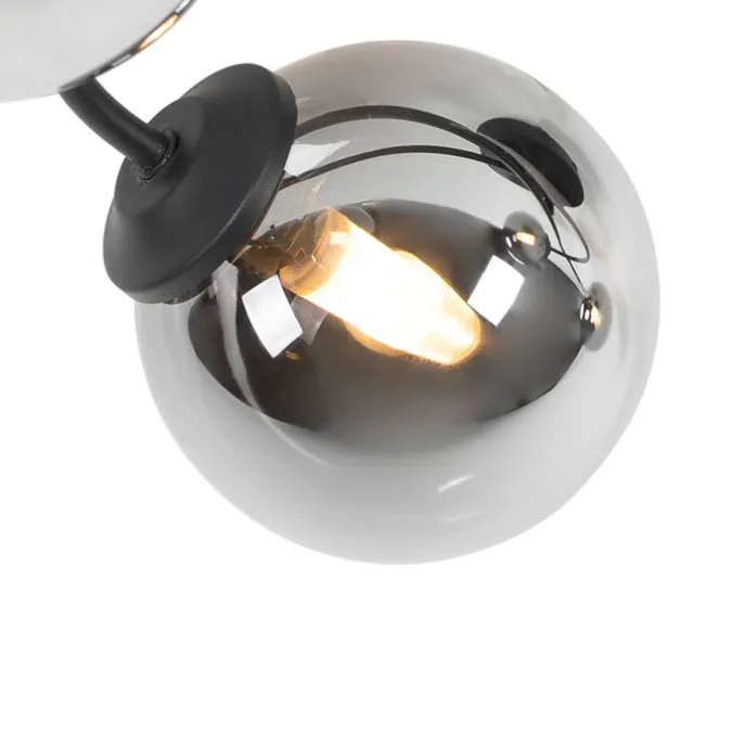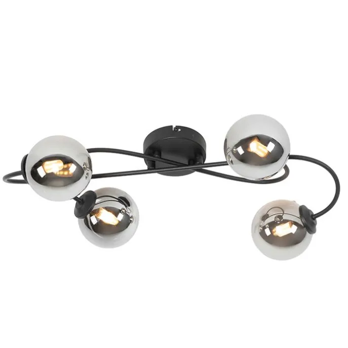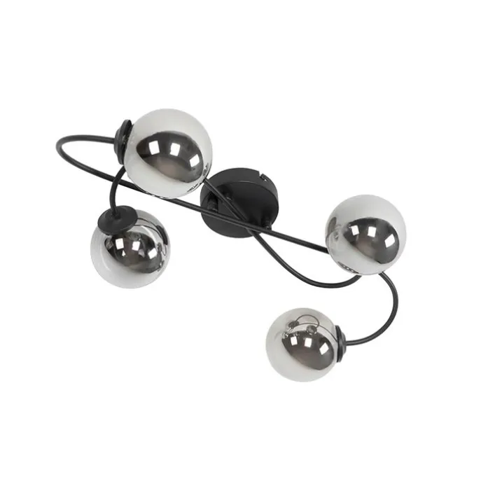 Moderne plafondlamp zwart 4-lichts met smoke glas – Athens