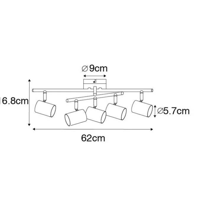 Met zijn unieke design weet Jeana al snel de aandacht te trekken. Hij is gemaakt van staal en afgewerkt in het zwart. Hij heeft een hoogte van 16,8 cm, lengte van 62 cm en breedte van 44 cm. De montageplaat heeft een hoogte van 2,5 cm, lengte van 9 cm en breedte van 9 cm. Je maakt de lamp compleet met 5 lichtbronnen die ieder een GU10 fitting hebben (max. 7 Watt). Zorg dat je deze er nog los bij besteld. De lampenkappen hebben ieder een diameter van 5,7 cm en een hoogte van 8 cm. De lamp is dimbaar met een externe dimmer, deze is niet inbegrepen. Maak jouw woonkamer, slaapkamer of hal compleet met de moderne plafondlamp Jeana.