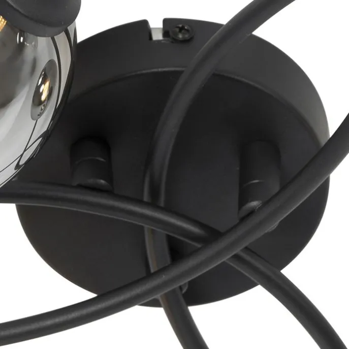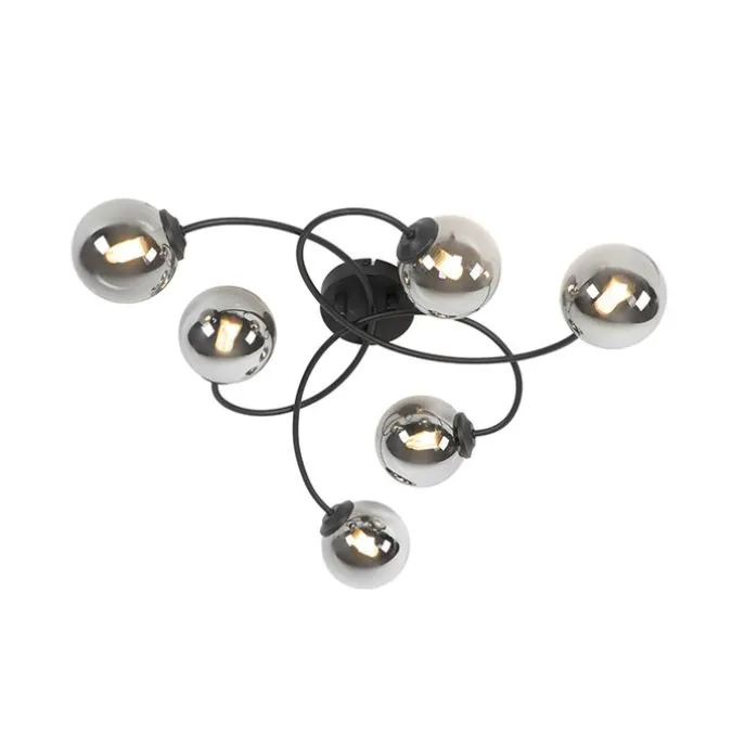 Moderne plafondlamp zwart 6-lichts met smoke glas – Athens