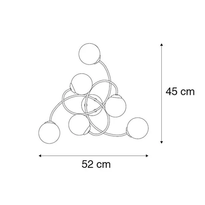 Plafondlamp Athens weet met zijn unieke design al snel de aandacht te trekken in de ruimte. De lamp is gemaakt van zwart staal gecombineerd met smoke glas. Dit zorgt ervoor dat de lamp een moderne en mysterieuze uitstraling krijgt. Athens heeft een hoogte van 18 cm, breedte van 45 cm en lengte van 52 cm. De montageplaat heeft een diameter van 10 cm en een hoogte van 2,5 cm. De glazen smoke kappen hebben ieder een diameter van 10 cm. Athens maak je af met zes lichtbronnen die ieder beschikken over een G9 fitting (max. 28 Watt). Zorg dat je deze er nog los bij besteld! De plafondlamp kun je aansluiten op een externe dimmer, om extra sfeer te creëren. Deze is niet inbegrepen. Een moderne plafondlamp zoals Athens maakt je interieur af. Perfect voor in de woonkamer, slaapkamer of werkkamer. Een stijlvolle toevoeging voor jouw ruimte!