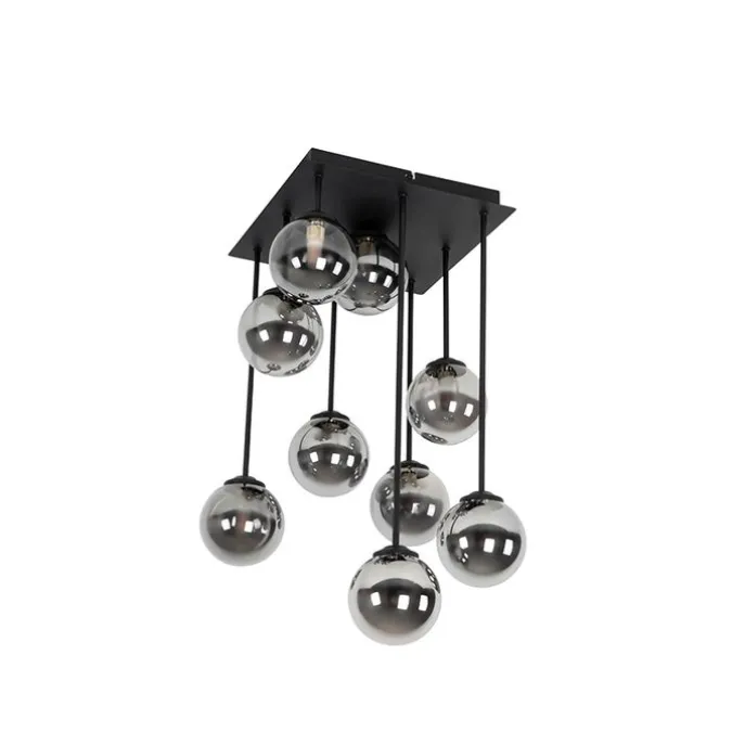 Moderne plafondlamp zwart 9-lichts met smoke glas – Athens