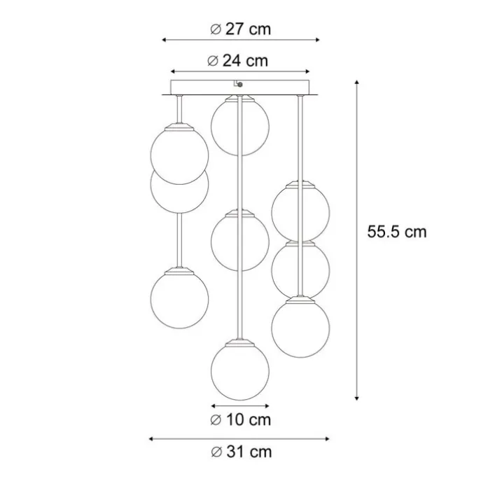 Creëer een adembenemend middelpunt in je interieur met de Athens 9-lichts plafondlamp. Deze moderne lamp combineert een strak zwart frame met een speels ontwerp van amber- en smoke-gekleurde glazen bollen. De verschillende tinten glas en hoogtes van de hangende bollen zorgen voor een dynamische en luxueuze uitstraling, terwijl het warme licht een uitnodigende sfeer creëert in je woonkamer, eetkamer of hal. De Athens plafondlamp biedt niet alleen een prachtig design, maar ook volop licht dankzij de negen lichtpunten. Combineer hem met filament LED-lampen voor een stijlvolle en energiezuinige oplossing. Het unieke ontwerp past perfect in moderne en industriële interieurs en trekt gegarandeerd alle aandacht. Geef je interieur een vleugje verfijning en stijl met de Athens plafondlamp. Bestel vandaag nog en maak van je ruimte een echte blikvanger!