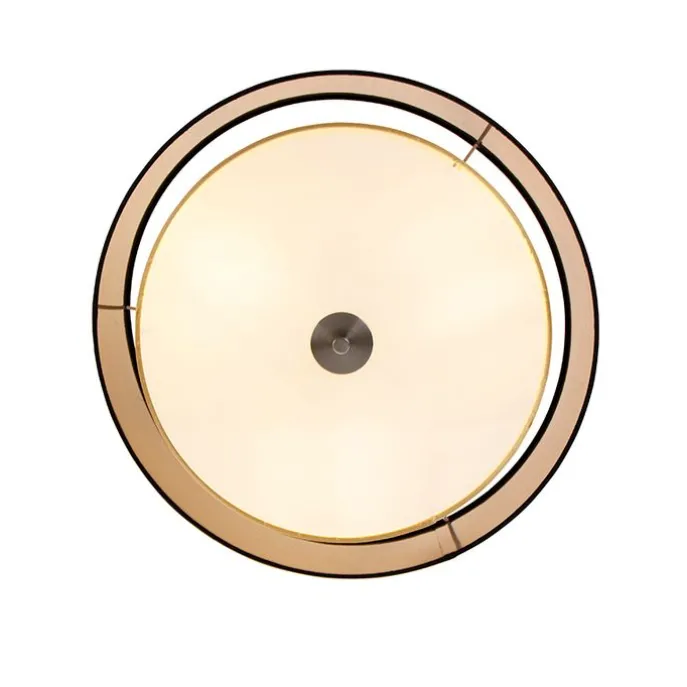 Drum Duo is zoals je al doet vermoeden een lamp met een duo kap. De binnenste kap is goudkleurig en de buitenste kap is zwart en doorschijnend. Dit zorgt voor een extra dimensie in de lamp en maakt hem erg chique. Doordat de binnenste kap is afgesloten met een opaal glazen plaat, wordt het licht gedempt. Dat zorgt voor een aangename licht beleving. Drum Duo is gemaakt van stof met staal en glas. Hij heeft een diameter van 50 cm en een hoogte van 32 cm. De montageplaat heeft een diameter van 12 cm en een hoogte van 2,5 cm. Je maakt de plafondlamp af met 3 lichtbronnen met een E27 fitting van max. 40 Watt. Zorg dat je deze er nog los bij besteld. De lamp is dimbaar met een externe dimmer, deze is niet inbegrepen. Drum Duo is een mooie plafondlamp voor in de hal, woonkamer of slaapkamer. Maak het gezellig in huis met Drum Duo.