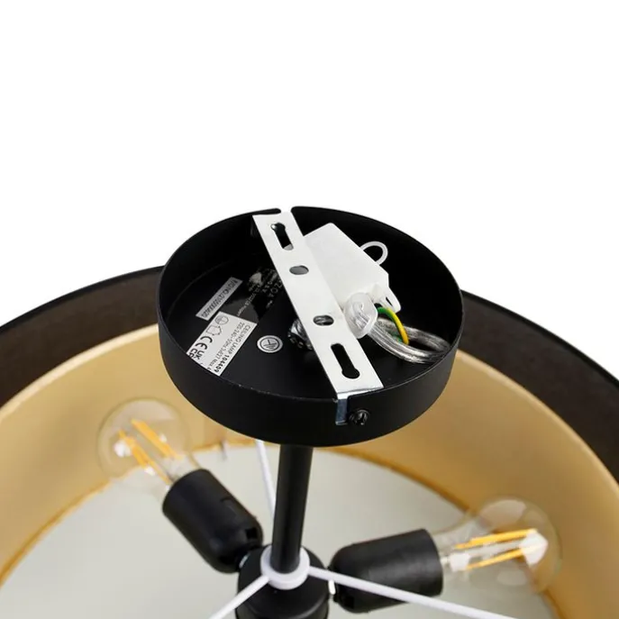 Moderne plafondlamp zwart met goud 50 cm 3-lichts – Drum Duo