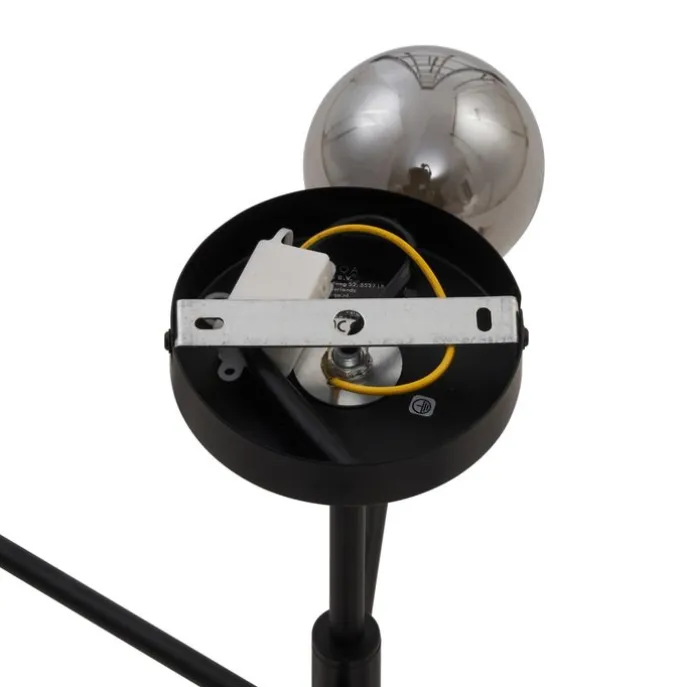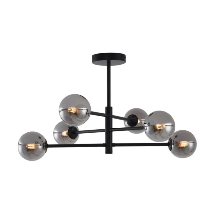 Geef je interieur een moderne en luxe uitstraling met de Ryan plafondlamp. Deze stijlvolle 6-lichts lamp combineert een strak zwart frame met verfijnde bollen van smoke-glas, die zorgen voor een warme en sfeervolle lichtverdeling. Het speelse design met vertakte armen maakt deze lamp een echte eyecatcher in elke ruimte. De Ryan is uitgerust met G9-fittingen en volledig dimbaar, zodat je de lichtsterkte eenvoudig kunt aanpassen aan jouw stemming of gelegenheid. De lichtbronnen worden niet meegeleverd dus vergeet niet om die er nog bij te bestellen. Perfect voor boven de eettafel, in de woonkamer of zelfs in de slaapkamer, waar hij direct een modern statement maakt. Creëer een tijdloze sfeer in jouw huis – bestel de Ryan plafondlamp vandaag nog en maak je ruimte compleet!