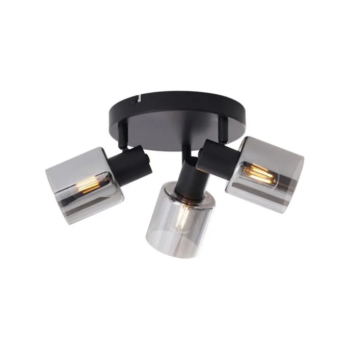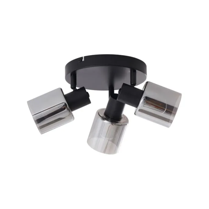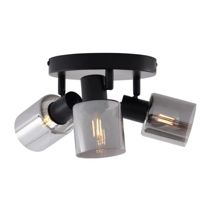 Breng modern design en sfeervolle verlichting samen met de Cilin 3-lichts plafondlamp in zwart met smoke-glas. Deze elegante lamp combineert een minimalistisch rond zwart frame met drie stijlvolle glazen kappen in een trendy rookkleur. Het smoke-glas verspreidt het licht op een warme en uitnodigende manier, waardoor deze lamp perfect is voor de woonkamer, slaapkamer of hal. De drie verstelbare spots bieden maximale flexibiliteit: richt het licht waar je het nodig hebt, of accentueer specifieke delen van je interieur. Dankzij de compatibiliteit met GU10 LED-lichtbronnen is Cilin niet alleen energiezuinig, maar ook duurzaam. Het moderne design maakt deze plafondlamp een tijdloze keuze die moeiteloos in elk interieur past. Geef je ruimte een luxe en moderne uitstraling met de veelzijdige Cilin plafondlamp. Bestel vandaag nog en geniet van stijlvolle verlichting die je interieur laat stralen!