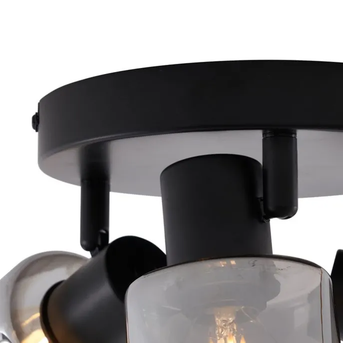 Moderne plafondlamp zwart met smoke glas rond 3-lichts – Cilin