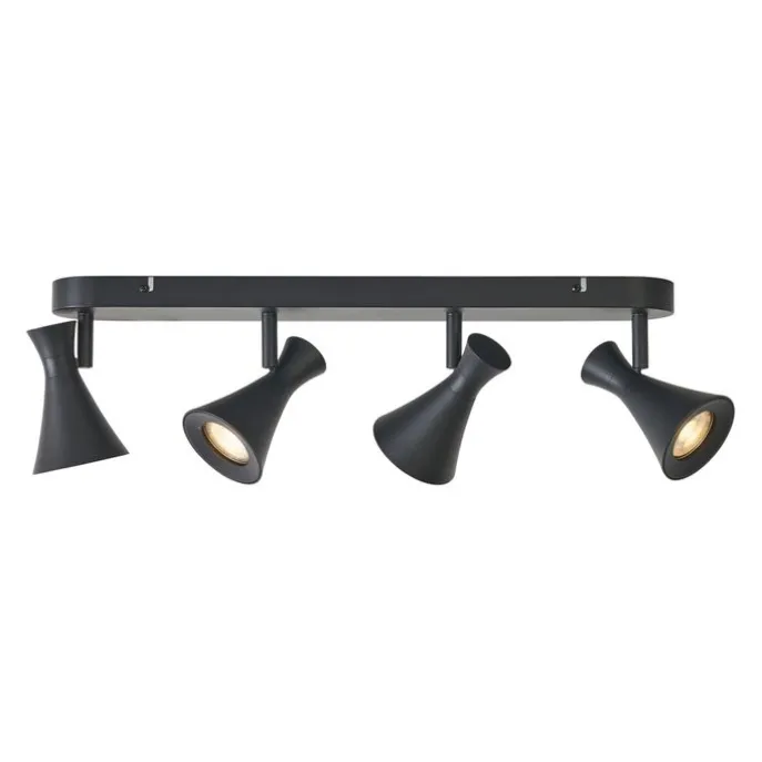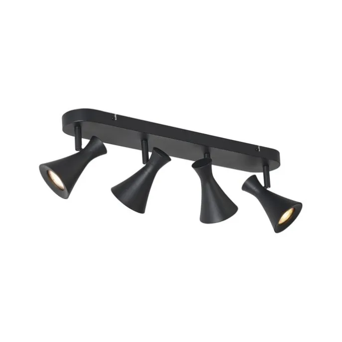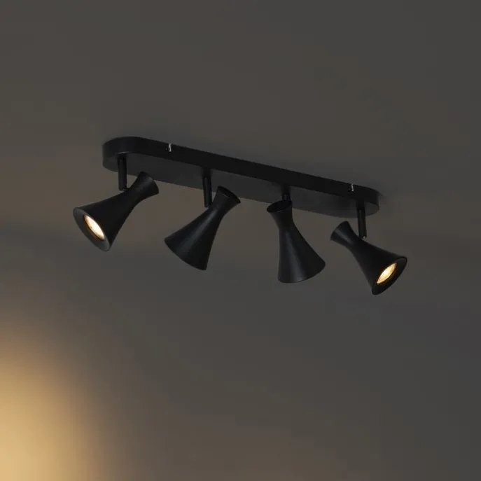 De Triangle 4-lichts plafondspot in matzwart biedt maximale controle over je verlichting. Met vier draai- en kantelbare spots richt je het licht precies waar je het nodig hebt – ideaal voor grotere ruimtes of om meerdere accenten te leggen. Het minimalistische design zorgt voor een moderne, rustige sfeer.