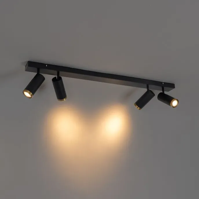 Moderne plafondspot zwart met brons 4-lichts verstelbaar – Renna