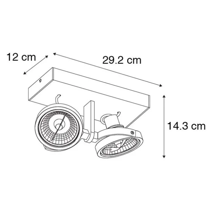 Een tijdloze en moderne spot, deze Master 111, perfect te gebruiken als basisverlichting! Hij is mooi afgewerkt in zwart. De spot heeft een hoogte van 14,3 cm, breedte van 12 cm en een lengte van 29,2 cm. De montageplaat heeft een lengte van 29,2 cm en een hoogte van 3 cm. Je maakt deze Master 111 compleet met twee GU10 lichtbronnen van max. 50 Watt (een AR111 lichtbron, deze heeft een diameter van 11 cm). Let op: deze lichtbron is niet meegeleverd en moet je nog apart bij bestellen in onze webshop! Hij is tevens dimbaar met een externe dimmer (bv. je wandschakelaar). Een leuk pluspunt aan deze spot is dat de beide spots afzonderlijk van elkaar kantelbaar zijn. Je kan dus zelf bepalen waar het licht naartoe schijnt! Het is een perfecte basisspot voor in de keuken, boven het kookeiland of in de woonkamer. Een tijdloos hebbeding voor in huis, deze Master 111.