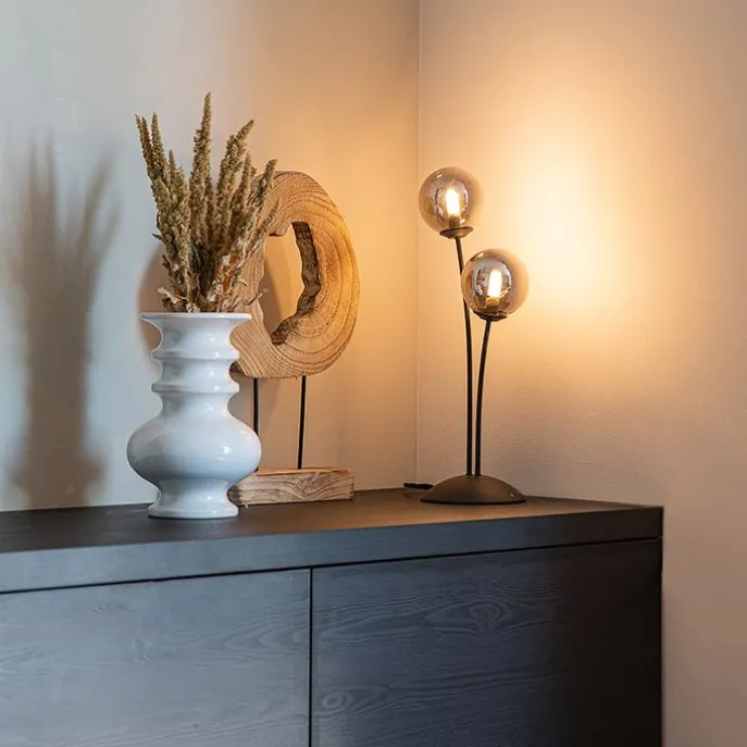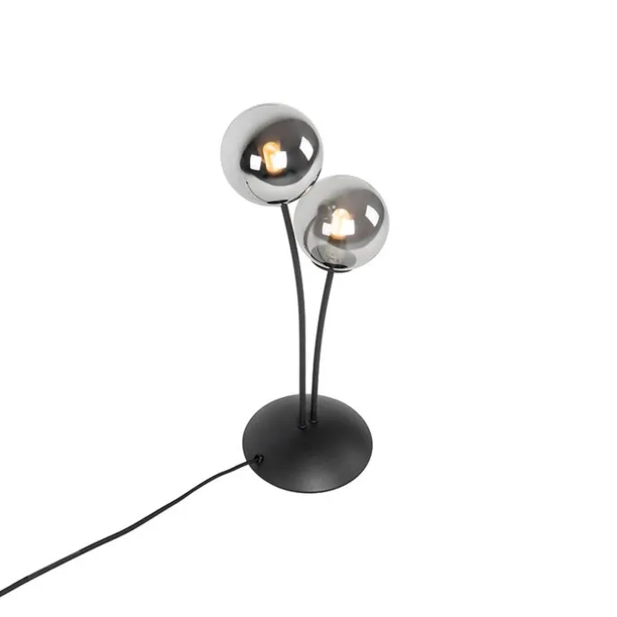 Moderne tafellamp zwart 2-lichts met smoke glas – Athens