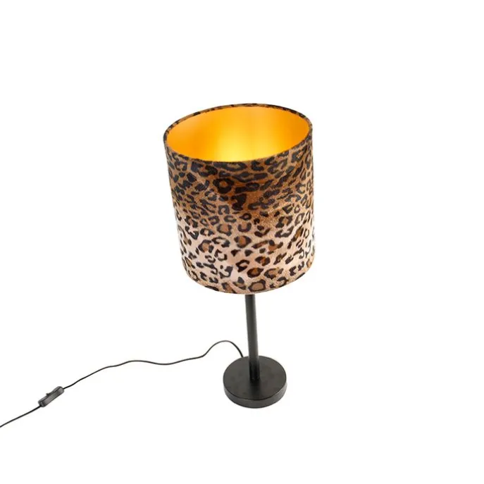 Moderne tafellamp zwart met kap luipaard 25 cm – Simplo