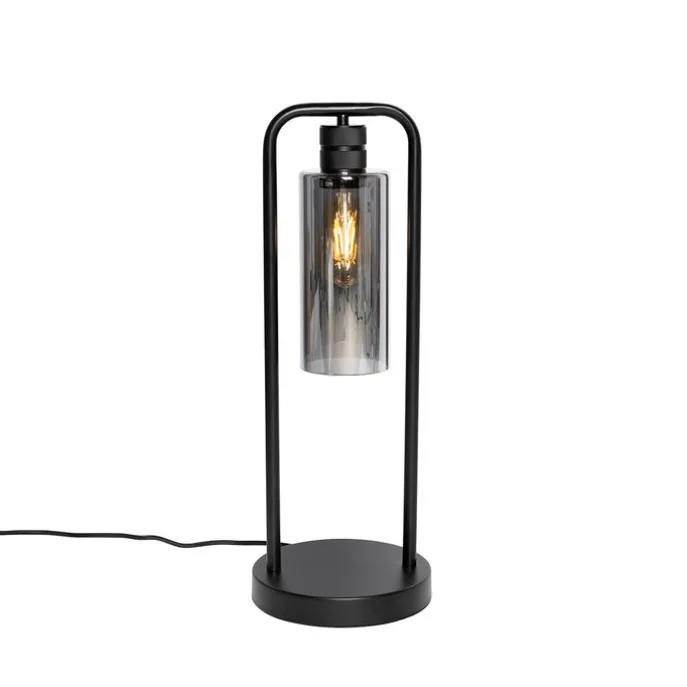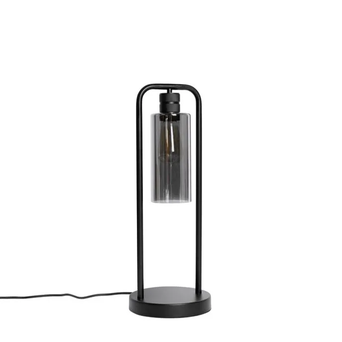 Moderne tafellamp zwart met smoke glas – Stavelot