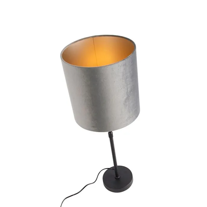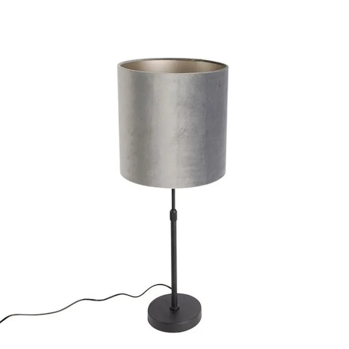 Moderne tafellamp zwart stoffen kap grijs 25 cm verstelbaar – Parte