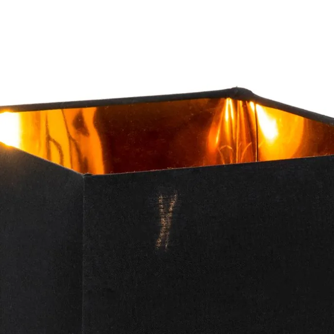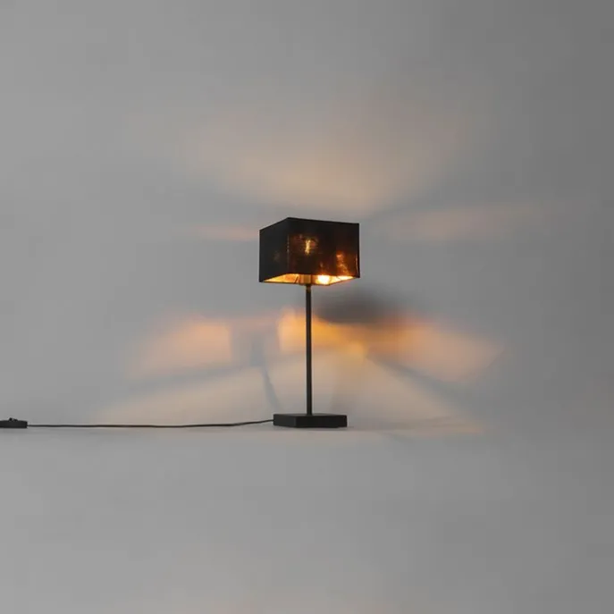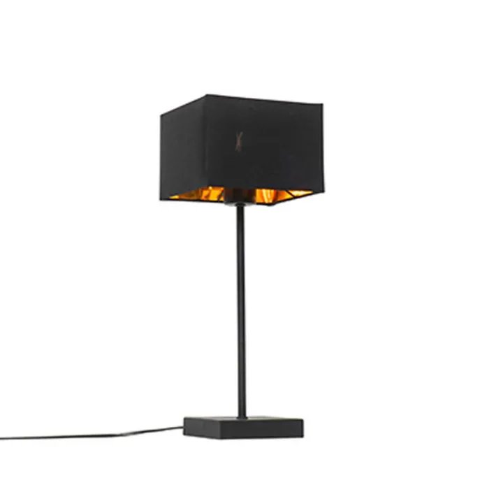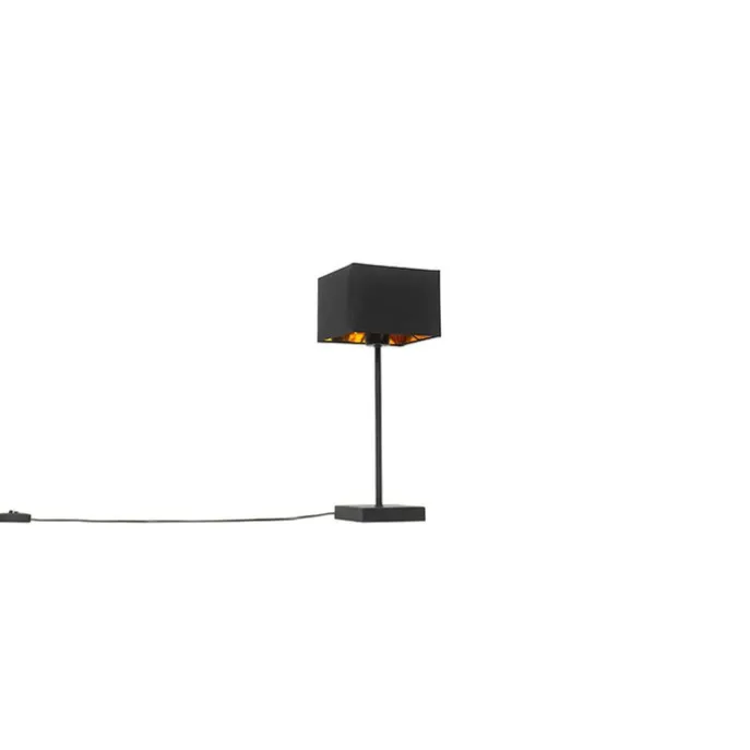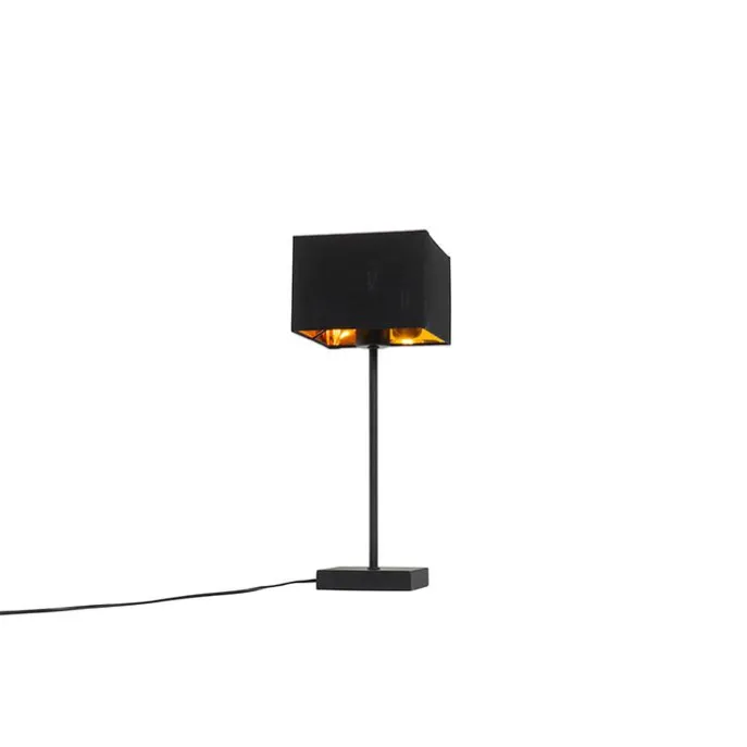 Moderne tafellamp zwart stoffen kap zwart met goud – VT 1