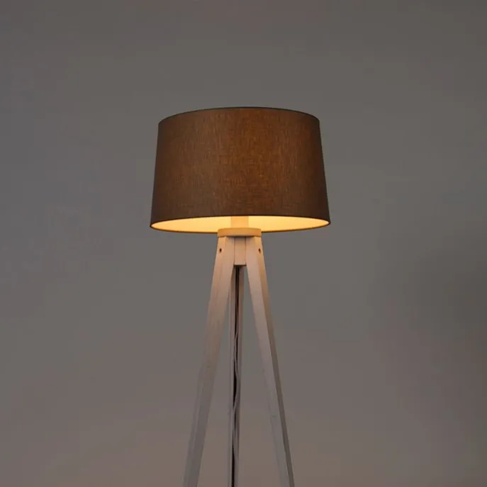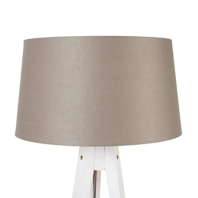 Moderne tripod wit met linnen kap taupe 45 cm – Tripod Classic