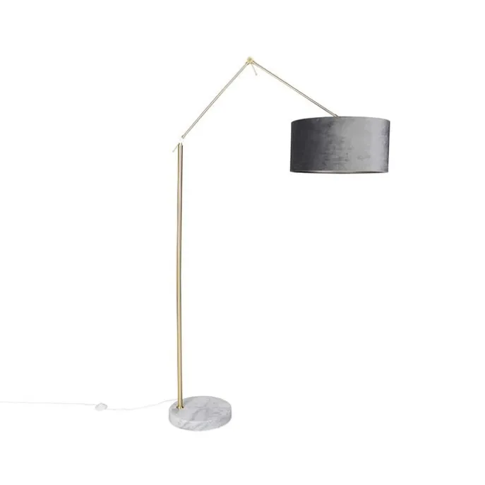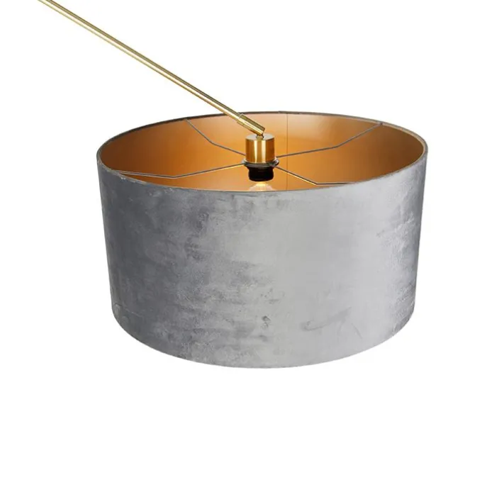 Moderne vloerlamp goud velours kap grijs 50 cm – Editor