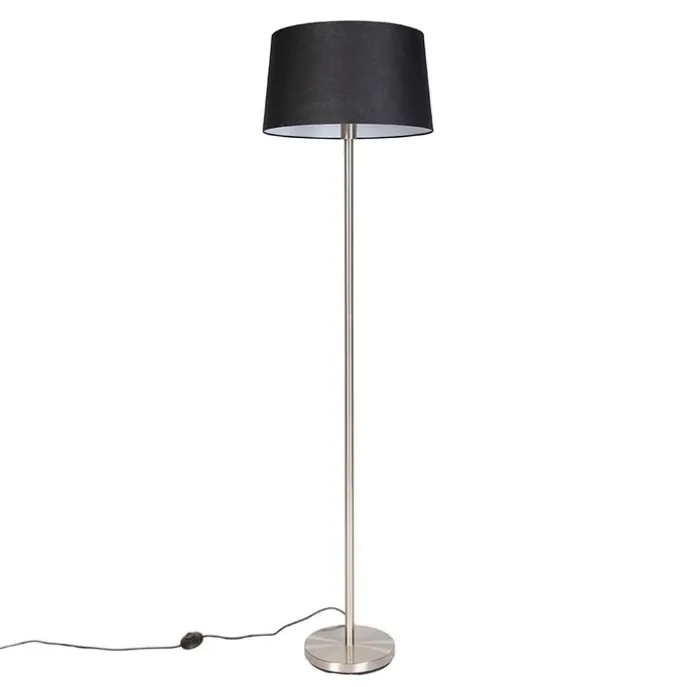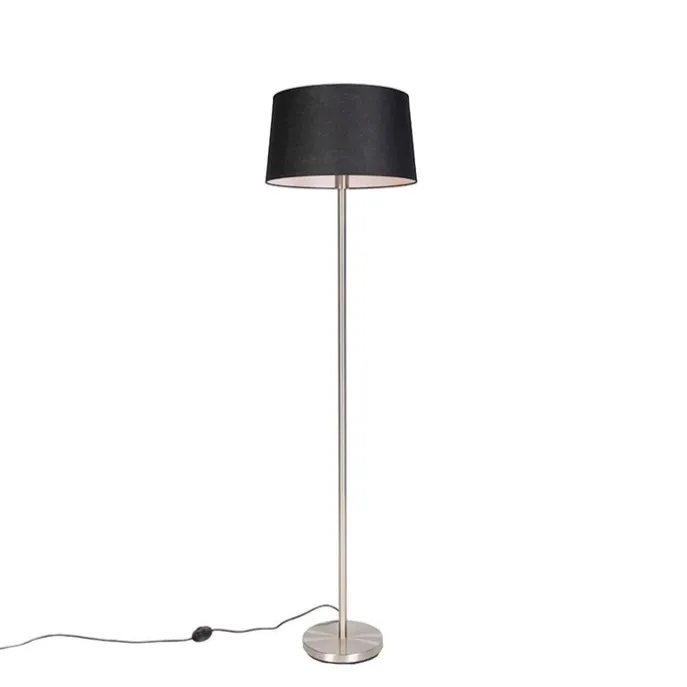 Moderne vloerlamp staal met zwarte kap 45 cm – Simplo