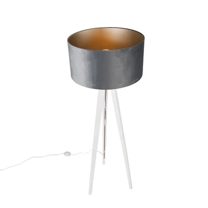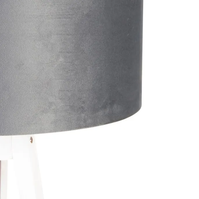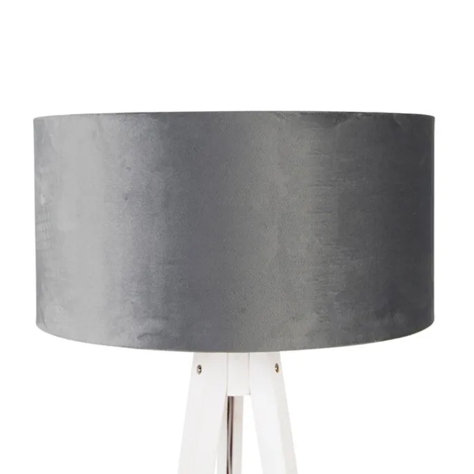 Moderne vloerlamp tripod wit met velours kap grijs 50 cm – Tripod Classic