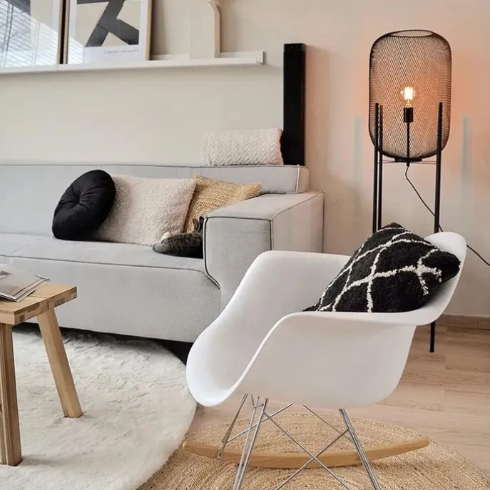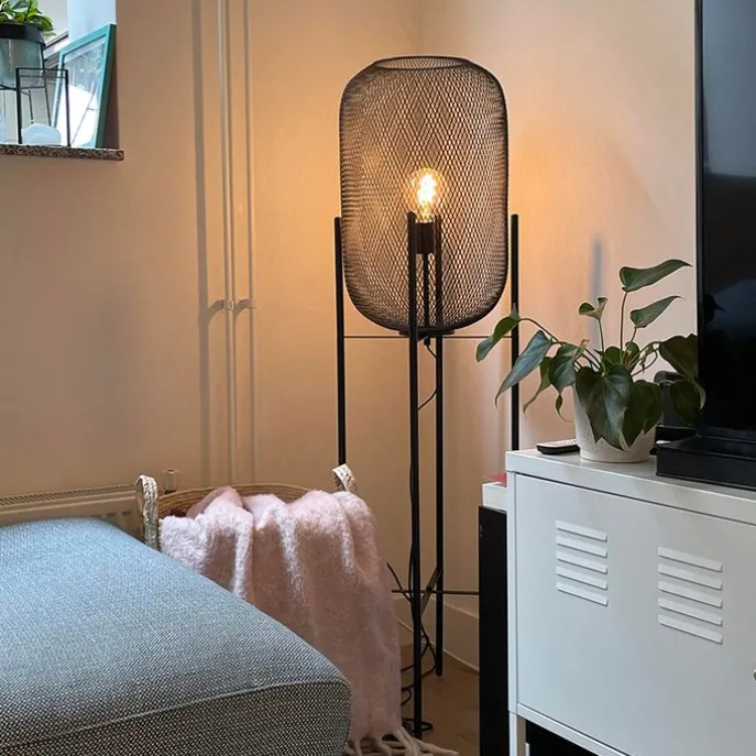 Een stoere vloerlamp, ideaal als sfeerlamp in de woonkamer! Dankzij het gaas toont hij erg luchtig. De zwarte kleur zorgt voor een tijdloos effect. Hij heeft een hoogte van 135 cm en de kap heeft een diameter van 35 cm. Het is een ware eyecatcher in een moderne omgeving, maar past ook perfect in een industrieel interieur. De lichtbron is zichtbaar in de kap. Kies daarom voor een stoere variant passend in een E27 fitting (max. 60 Watt).De lamp is tevens dimbaar met een externe dimmer.Zorg voor gezelligheid in huis met de Bliss Mesh!