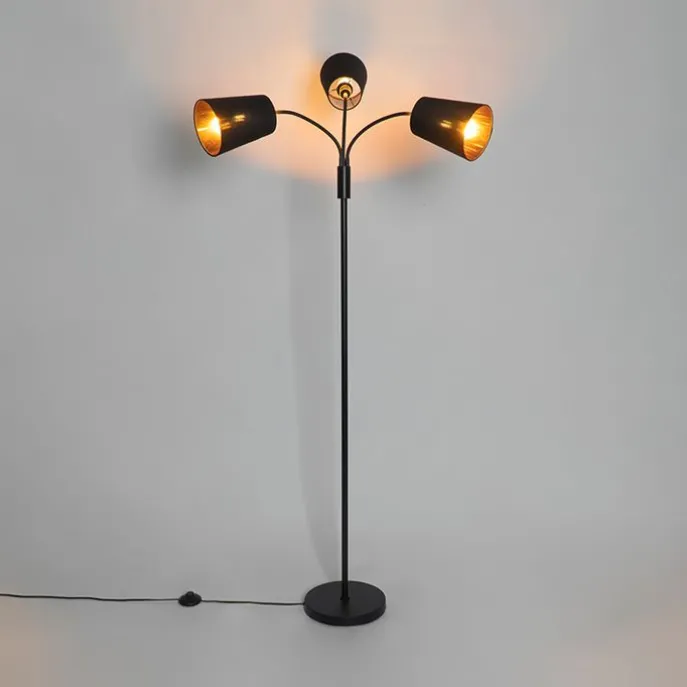 Moderne vloerlamp zwart 3-lichts – Carmen