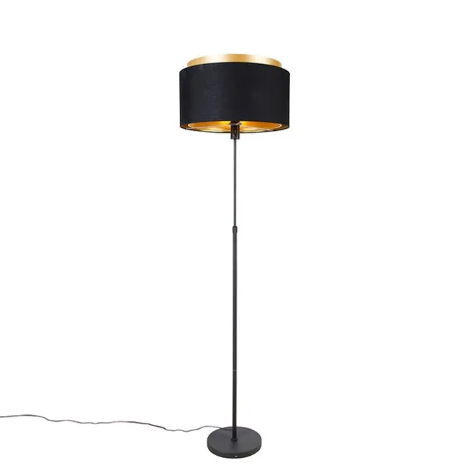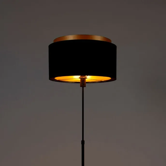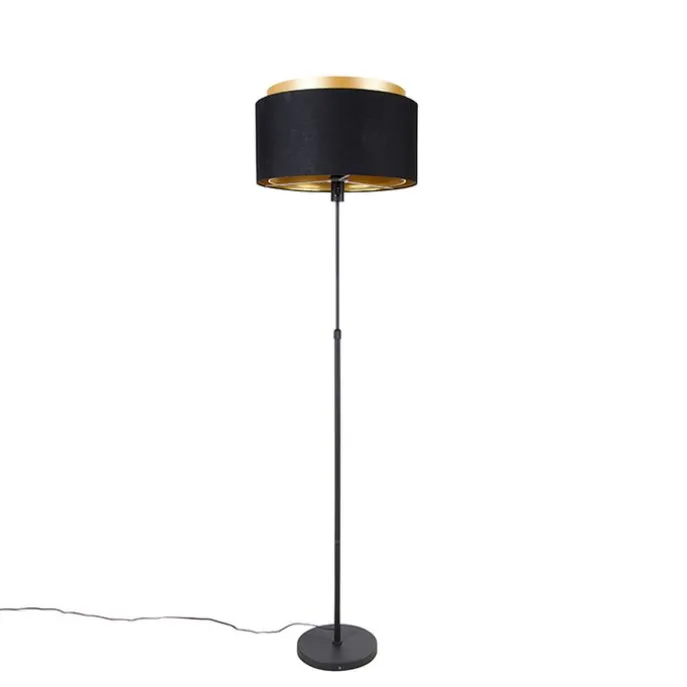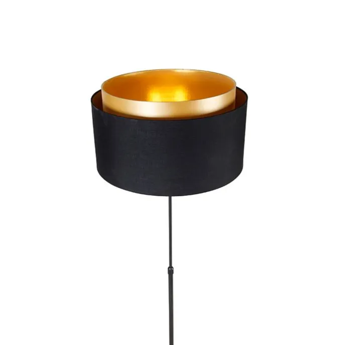 Moderne vloerlamp zwart met goud duo kap – Parte