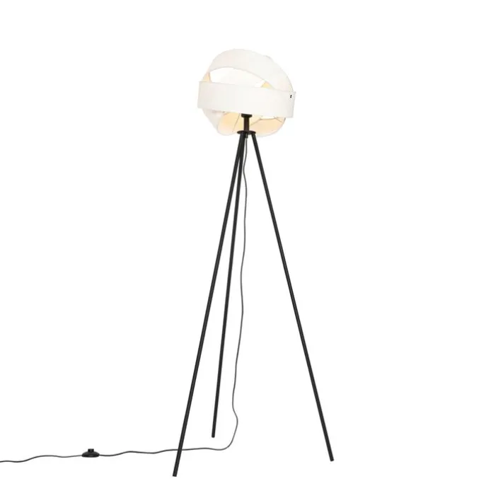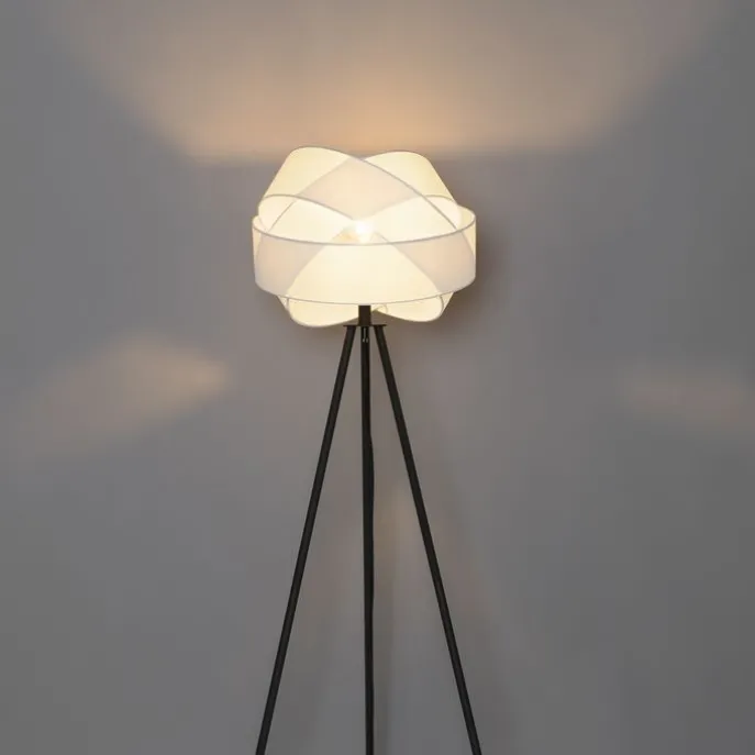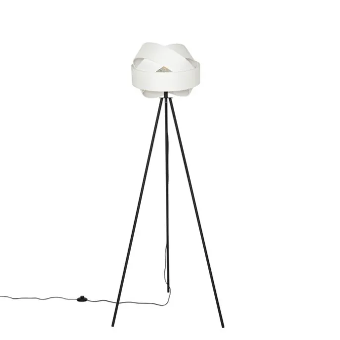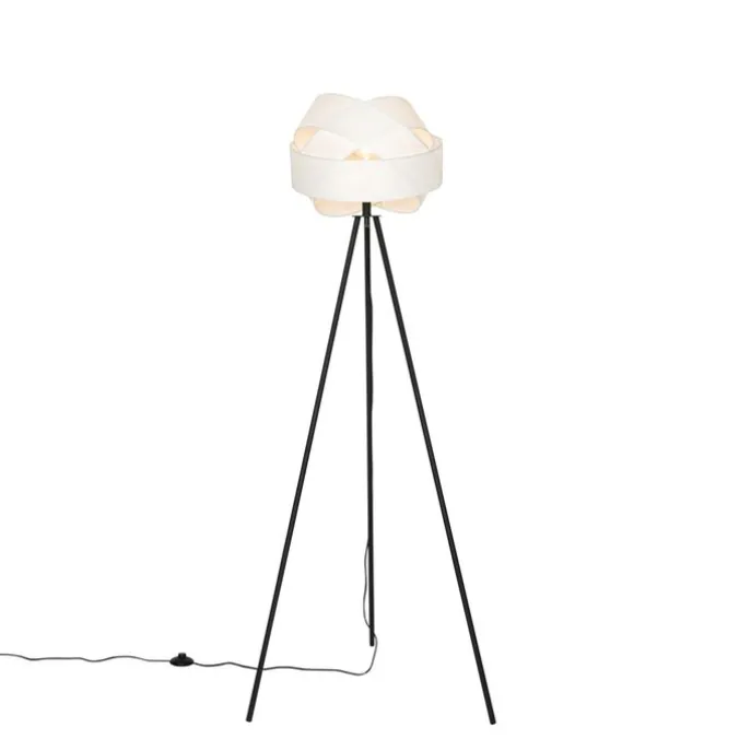 Moderne vloerlamp zwart met witte kap – Cloth