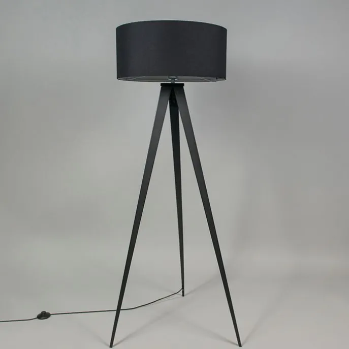 Moderne vloerlamp zwart met zwarte kap – Ilse