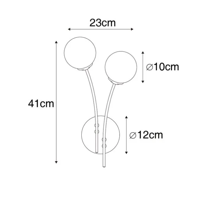 Wat een schattig wandlamp is Athens! Door zijn opale rond kap verspreidt het licht zich geleidelijk door de ruimte. De lamp is gemaakt van staal met glas en afgewerkt in het goud, met een witte opale bolle kap. Athens heeft een diepte van 10 cm, hoogte van 41 cm en lengte van 23 cm. De montageplaat heeft een diepte van 2,5 cm en een diameter van 10 cm. Je maakt de wandlamp compleet met twee G9 lichtbron van max. 28 watt. Zorg dat je deze er nog los bij besteld. Athens past perfect in de woonkamer, slaapkamer of hal. Maak jouw interieur modern met wandlamp Athens!