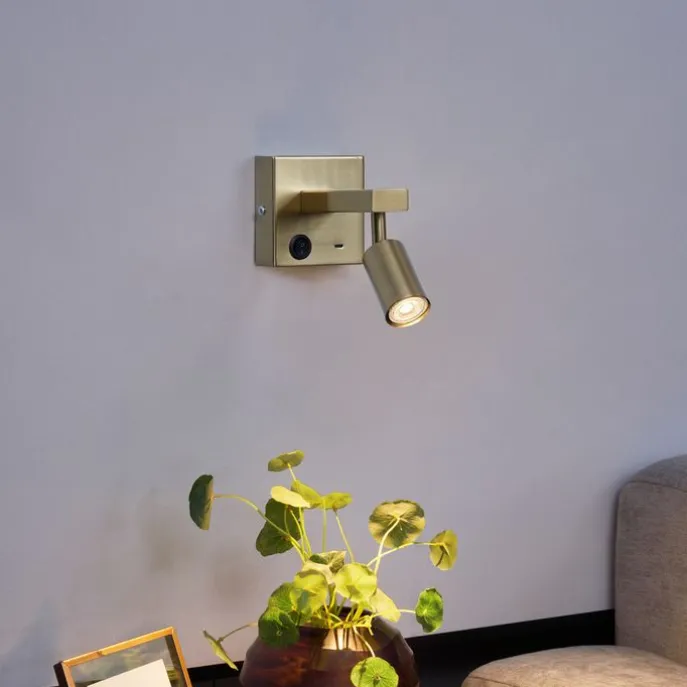 Moderne wandlamp goud met USB-C kantelbaar – Rex