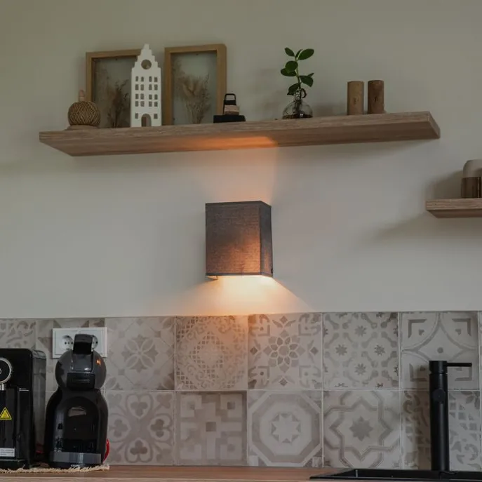 Moderne wandlamp jute grijs met stoffen kap – Vete