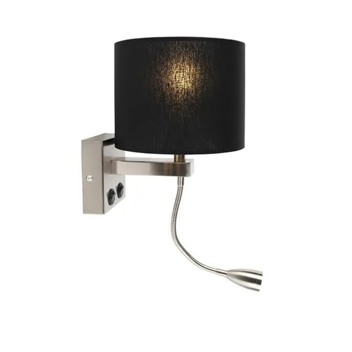Let’s go modern! Deze wandlamp is perfect om je muur een moderne look te geven. Het is een praktische en stijlvolle wandlamp uitgevoerd in een stalen kleur. De charmante wandlamp is zo gemaakt om jou te voorzien van de perfecte verlichtingscombinatie door de ingebouwde leeslamp die je zelf kan verstellen naar jouw zin. De leeslamp beschikt over een geïntegreerde LED 2V module. Met een lichtbron met een E27 fitting tot maximaal 60 Watt maak je de Brescia af. Let op: deze is niet mee geleverd maar kun je eenvoudig bestellen in onze webshop. Deze Brescia is makkelijk te gebruiken dankzij de aan/uit knoppen op de montageplaat van de lamp. Hierdoor is de lamp en de leeslamp afzonderlijk te bedienen. Hij heeft een diameter van 18 cm, en een totale hoogte van 42 cm. De zwarte lampenkap in combinatie met chroom is een echte eyecatcher die niet kan misstaan! Perfect als leeslampje in jouw slaapkamer!