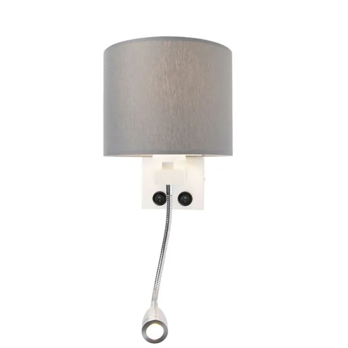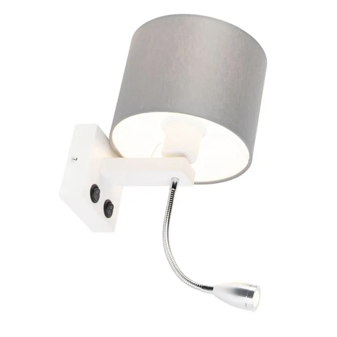 Let’s go modern! Deze wandlamp is perfect om je muur een moderne look te geven. Het is een praktische en stijlvolle wandlamp uitgevoerd in een fraaie witte kleur. De charmante wandlamp is zo gemaakt om jou te voorzien van de perfecte verlichtingscombinatie door de ingebouwde leeslamp die je zelf kan verstellen naar jouw zin. Met een lichtbron voor een E27 fitting maak je de Brescia af. Deze Brescia is makkelijk te gebruiken dankzij de aan/uit knoppen op de montageplaat van de lamp. Hierdoor is de lamp en de leeslamp afzonderlijk te bedienen. Hij heeft een diameter van 18 cm, en een totale hoogte van 42 cm. De grijze lampenkap in combinatie met de witte armatuur geeft rust aan jouw interieur. Perfect als leeslampje in jouw slaapkamer!
