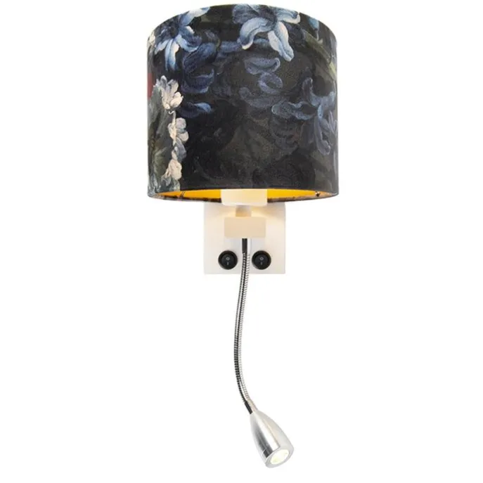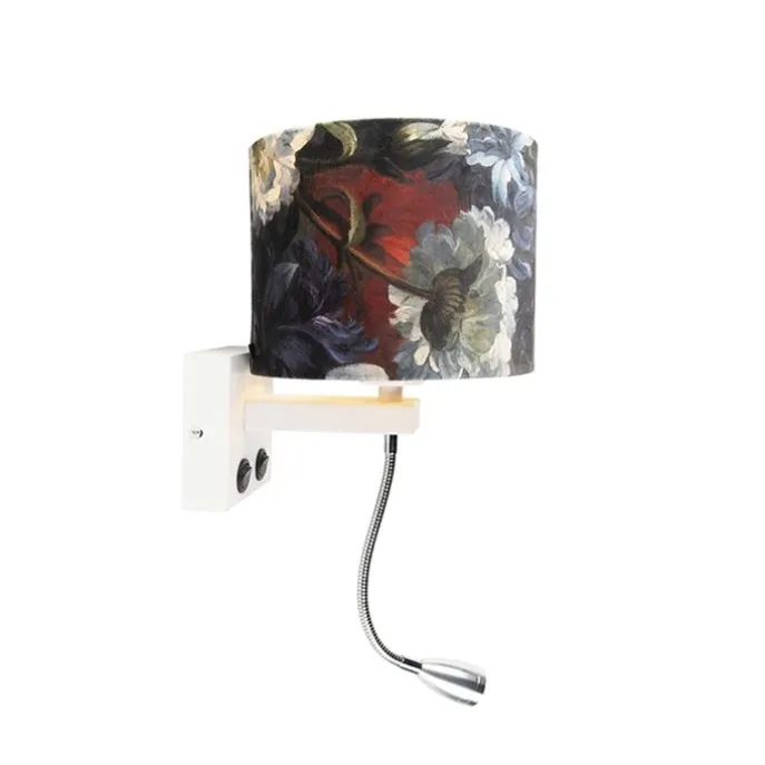 Moderne wandlamp wit met kap velours bloemen – Brescia