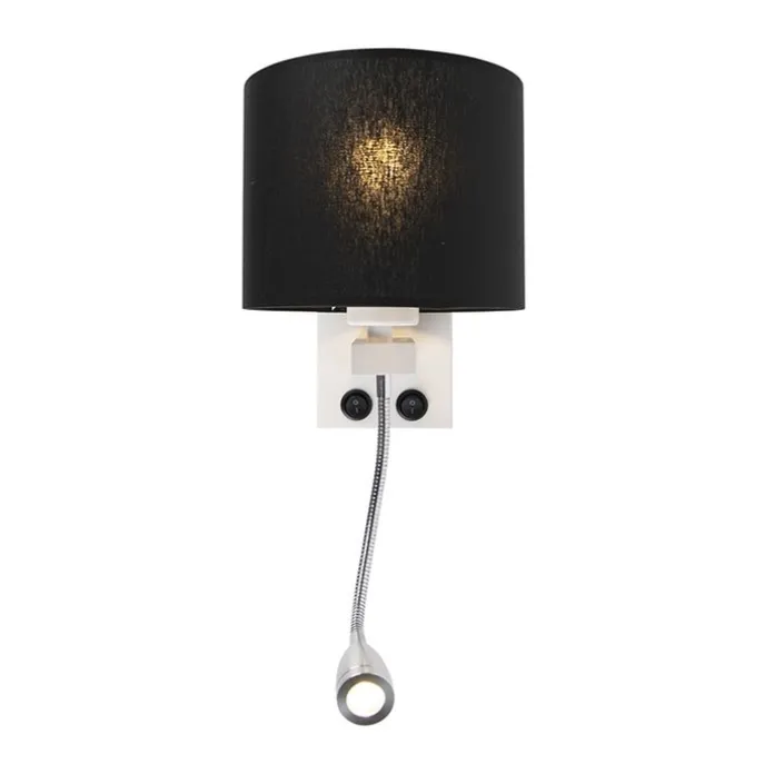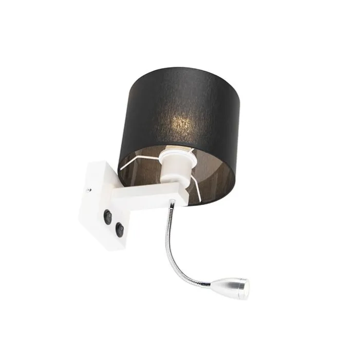 Let’s go modern! Deze wandlamp is perfect om je muur een moderne look te geven. Het is een praktische en stijlvolle wandlamp uitgevoerd in een witte kleur. De charmante wandlamp is zo gemaakt om jou te voorzien van de perfecte verlichtingscombinatie door de ingebouwde leeslamp die je zelf kan verstellen naar jouw zin. De leeslamp beschikt over een geïntegreerde LED 2V module. Met een lichtbron met een E27 fitting tot maximaal 60 Watt maak je de Brescia af. Let op: deze is niet mee geleverd maar kun je eenvoudig bestellen in onze webshop. Deze Brescia is makkelijk te gebruiken dankzij de aan/uit knoppen op de montageplaat van de lamp. Hierdoor is de lamp en de leeslamp afzonderlijk te bedienen. Hij heeft een diameter van 18 cm, en een totale hoogte van 42 cm. De zwarte lampenkap in combinatie met wit armatuur is een echte eyecatcher die niet kan misstaan! Perfect als leeslampje in jouw slaapkamer!