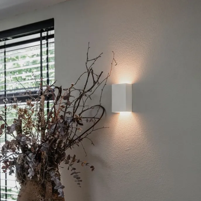 Colja Novo is een stijlvolle en sfeervolle wandlamp. Zijn strakke design zorgt ervoor dat hij perfect past in een modern interieur. Plaats de wandlamp tegen een witte muur, daardoor lijkt het of het armatuur gestroomlijnd loopt met de muur. De lamp is gemaakt van gips en afgewerkt in het wit. Hij heeft een diepte van 6 cm, hoogte van 16 cm en een lengte van 10 cm. Maar de wandlamp af met een lichtbron met G9 fitting (max. 25 Watt). Vergeet deze er niet nog los bij te bestellen. Doordat de verlichting tegen de wand zit en hij boven en onder licht geeft, krijg je een mooi strijkeffect op de muur. Colja Novo is de perfecte wandlamp voor in de hal, woonkamer of slaapkamer. Maak het gezellig en stijlvol in huis met deze mooie wandlamp!