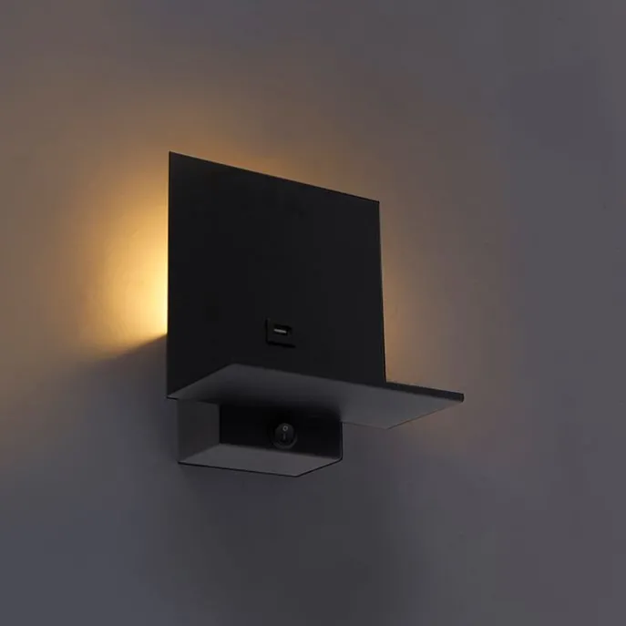 Moderne wandlamp zwart incl. USB-aansluiting – Flero