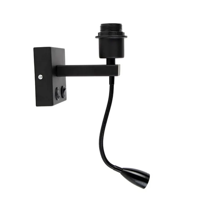 Moderne zwarte wandlamp, die gemakkelijk te combineren is met een opvallende of simpele lampenkap: je kan helemaal zelf kiezen hoe je je wandlamp decoreert! De leeslamp beschikt over een geïntegreerde LED 2V module en kun je met de flexibele arm de LED-leeslamp verstellen in de richting die je wenst. De lamp perfect om in de avond en overdag te gebruiken. Deze Brescia is makkelijk te gebruiken dankzij de aan/uit knoppen op de montageplaat van de lamp. Hierdoor is de lamp en de leeslamp afzonderlijk te bedienen. Met een lichtbron met een E27 fitting tot maximaal 60 Watt maak je de Brescia af. Let op: deze is niet mee geleverd maar kun je eenvoudig bestellen in onze webshop. De lamp heeft een diepte van 15 cm. De verstelbare arm heeft een lengte van 22 cm. De montageplaat heeft een lengte van 10 cm en een breedte van 10 cm. Zoek een leuke lampenkap en maak je interieur helemaal af met deze Brescia Combi!
