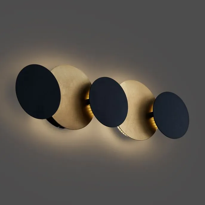 Moderne wandlamp zwart met goud incl. LED 3-staps dimbaar 5-lichts – Sunrise 3