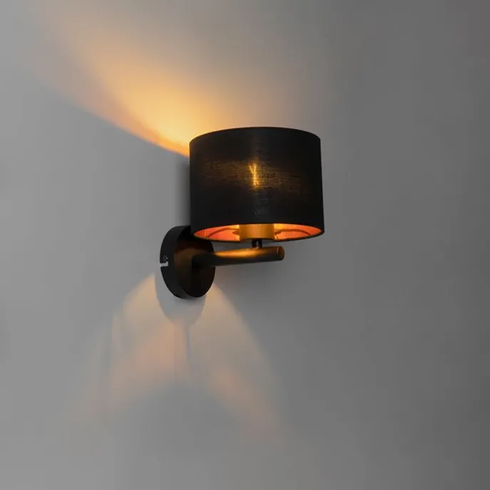 VT 1 Is de perfect wandlamp voor in de woonkamer, hal of slaapkamer. Zijn moderne design zorgt ervoor dat hij in ieder interieur past! De wandlamp is gemaakt van staal en is zwart. Doordat de binnenzijde goudkleurig is, krijg je een warm lichteffect in de ruimte. De stoffen kap heeft een diameter van 17 cm en een hoogte van 12 cm. De wandlamp heeft een totale hoogte van 20 cm, diepte van 20 cm en lengte van 17 cm. De montageplaat heeft een hoogte van 2 cm en een diameter van 9,7 cm. VT 1 maak je af met een lichtbron met E27 fitting (max. 60 Watt). Om het nog gezelliger te maken, kun je de lamp aansluiten op een dimmer. Deze is niet inbegrepen. VT 1 voegt sfeer toe aan jouw interieur. Precies wat je nodig hebt!