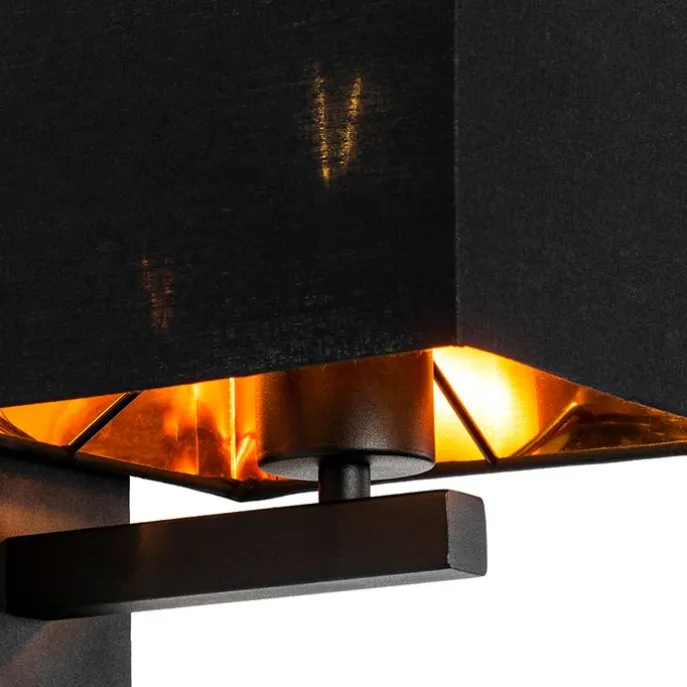 Wauw wat een mooi wandlamp is VT1. Erg modern in zijn design. Doordat de binnenzijde van de kap goud is, geeft de lamp een warm lichteffect. De wandlamp is gemaakt van stof met staal en is afgewerkt in het zwart met goud. Hij heeft een diepte van 20,1 cm, hoogte van 20,3 en lengte van 17 cm. De montageplaat heeft een diepte van 2 cm, hoogte van 8 cm en lengte van 8 cm. De kap heeft een diepte van 17 cm, hoogte van 12 cm en lengte van 17 cm. Je maakt VT1 compleet met een lichtbron die beschikt over een E27 fitting (max. 60 Watt). Vergeet deze er niet nog bij te bestellen! De lamp is dimbaar met een externe dimmer, deze is niet inbegrepen. Een mooie wandlamp voor in de woonkamer, slaapkamer of werkkamer. VT1 voegt sfeer toe aan jouw interieur en dat mag niet ontbreken!