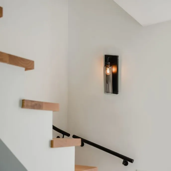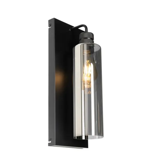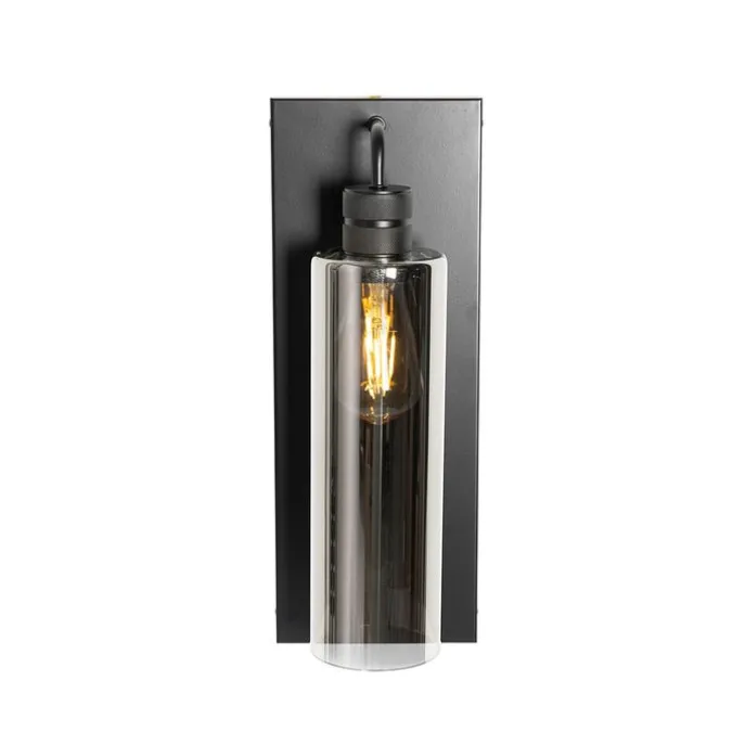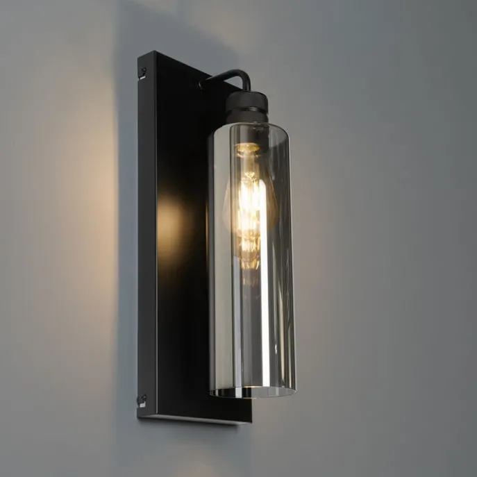 Moderne wandlamp zwart met smoke glas – Stavelot